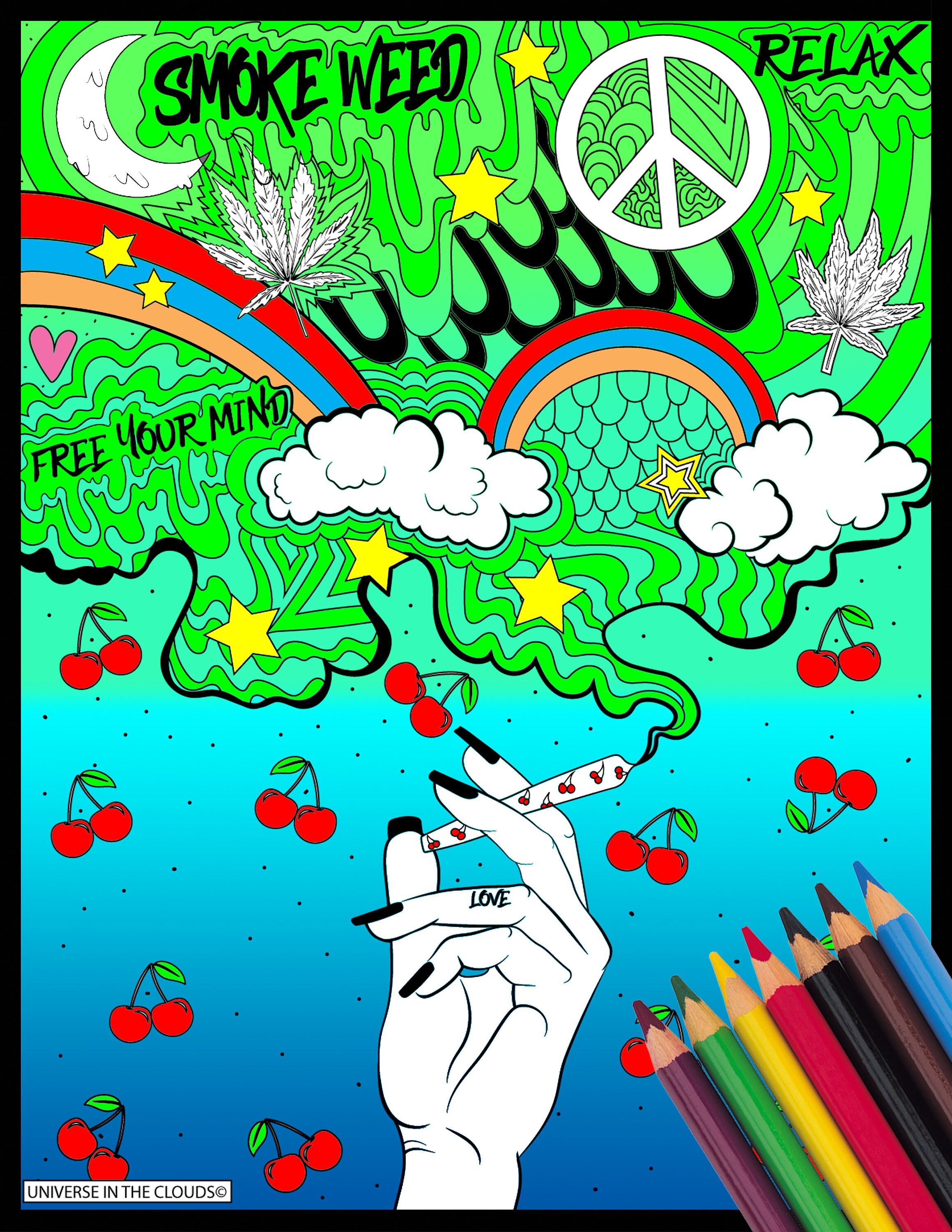 Click the Trippy Weed coloring pages to view printable version or color it online compatible with iPad and Android tablets. For a peaceful look fill in the white areas with one color throughout the page or make.
